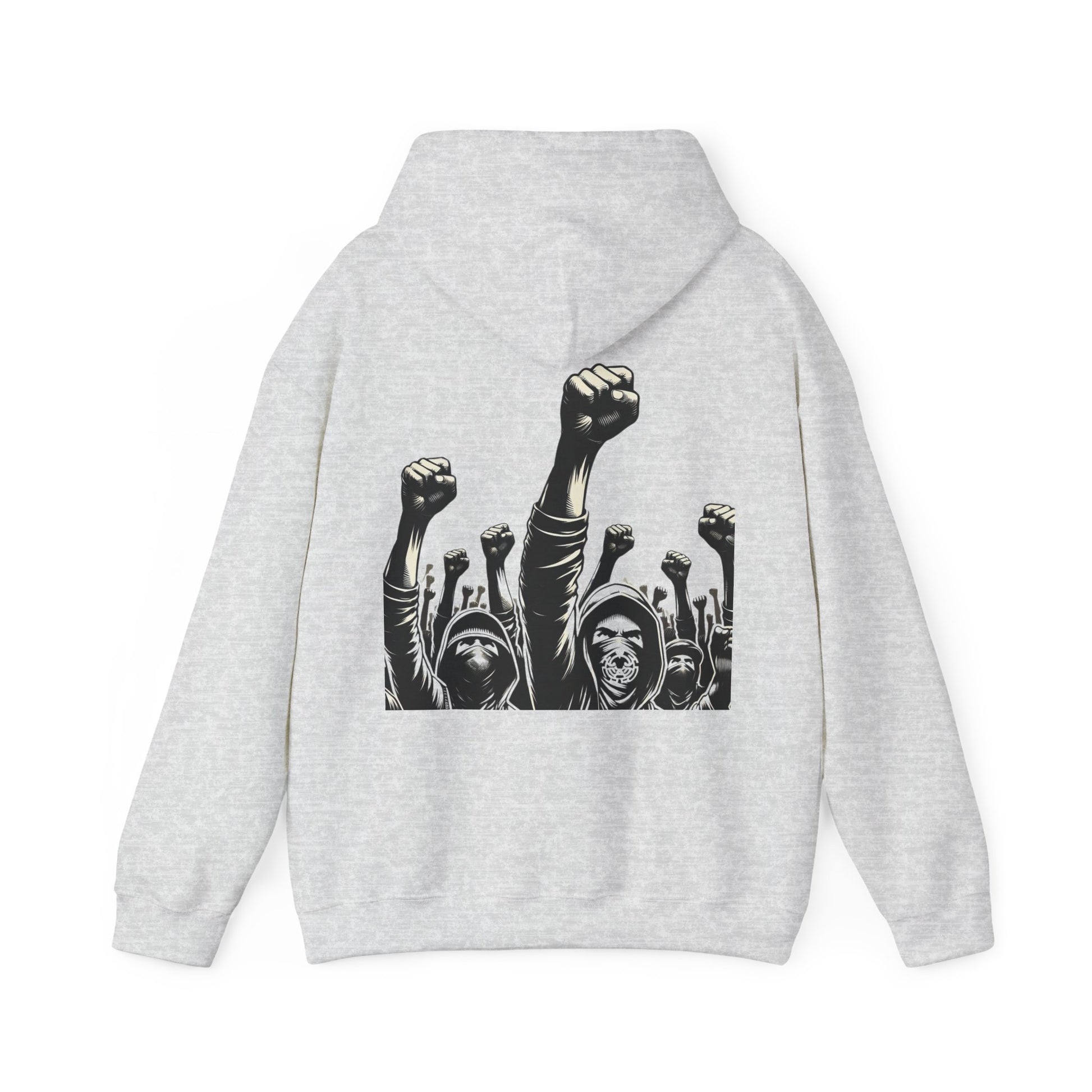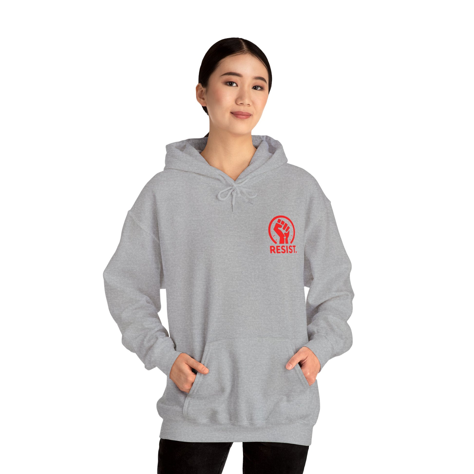 RESIST. Unisex Hooded Sweatshirt - Back Protesters - Front Logo